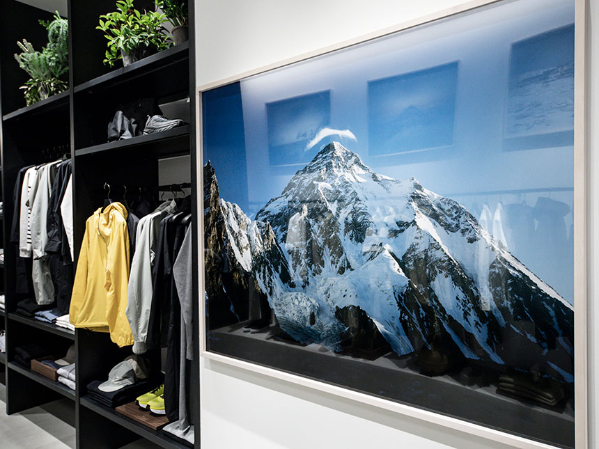 Exclusive to the Harajuku store will be a highly limited Goldwin capsule collection designed in collaboration with famed Japanese nature photographer Naoki Ishikawa. The collection, called WEARSSETS, includes a down jacket and down pants printed with Naoki Ishikawa’s breathtaking mountain photography.
