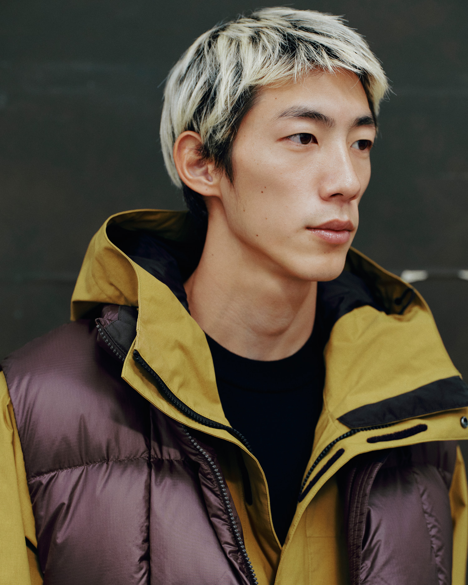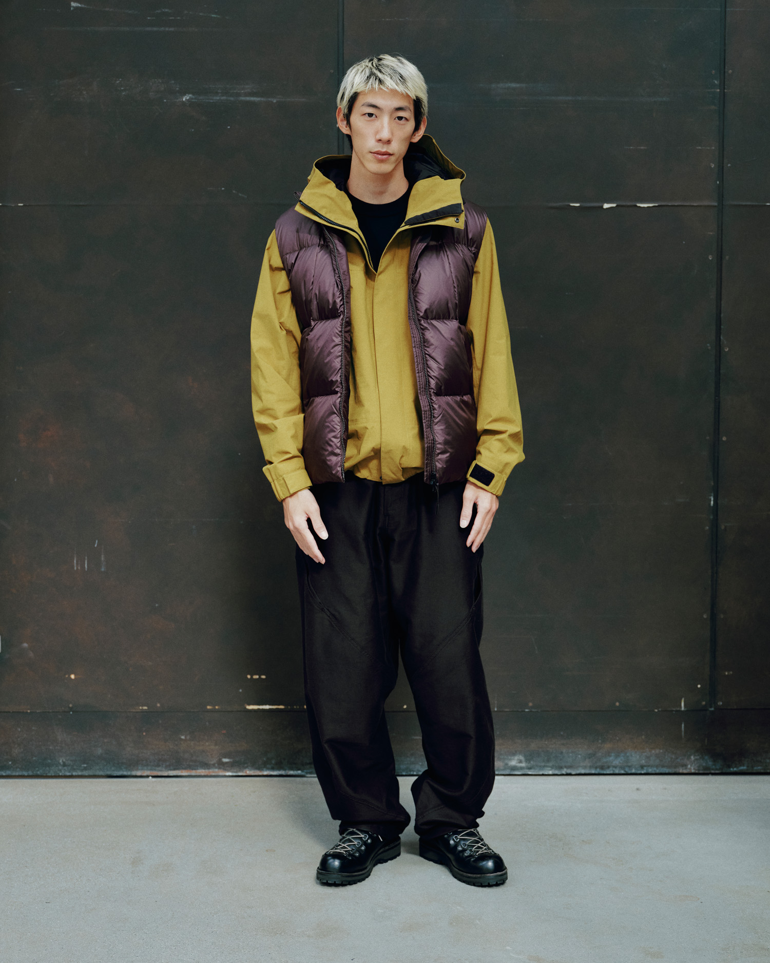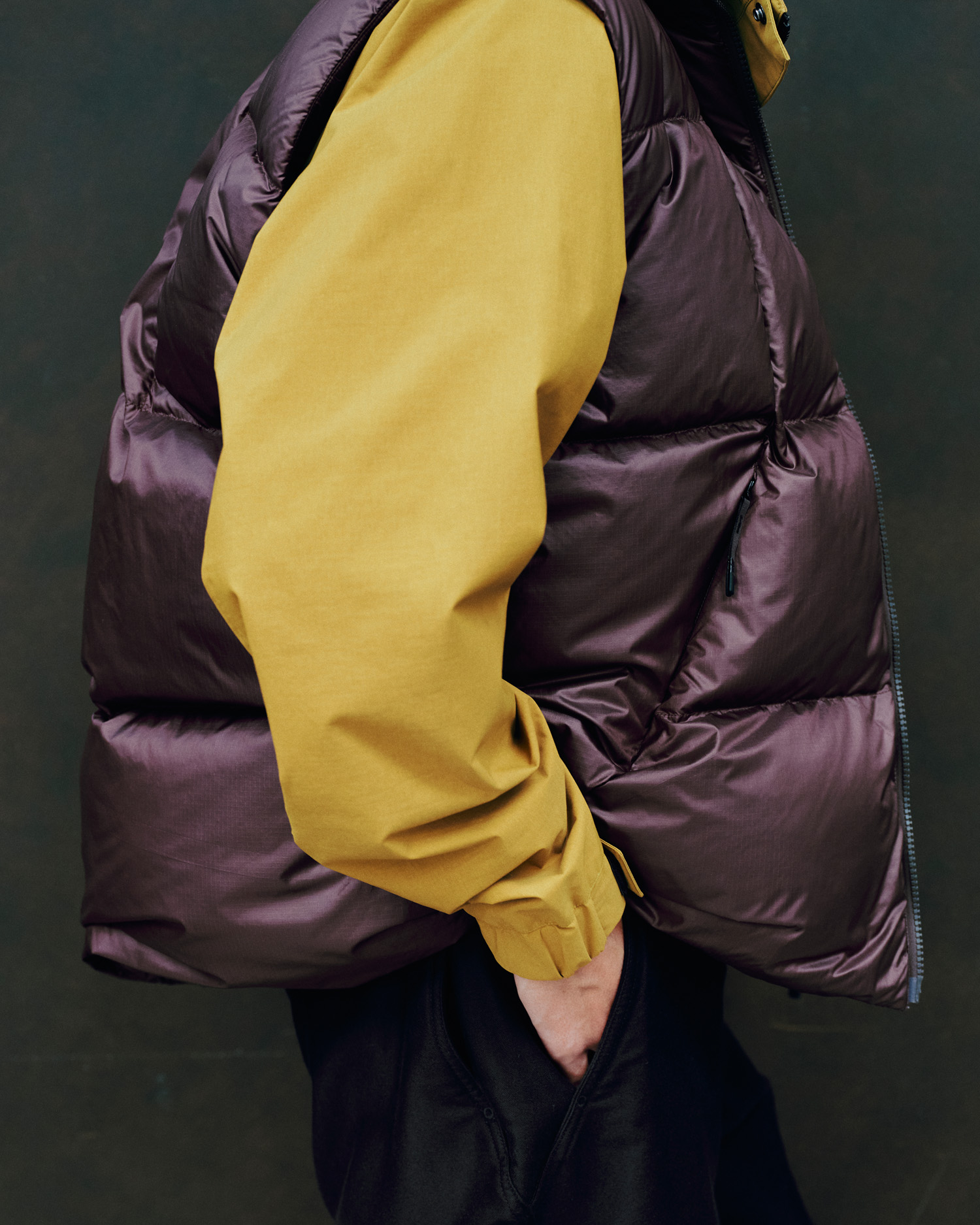 A high-loft down jacket crafted from nylon fabric with a unique, shadowed texture for a distinctive look.