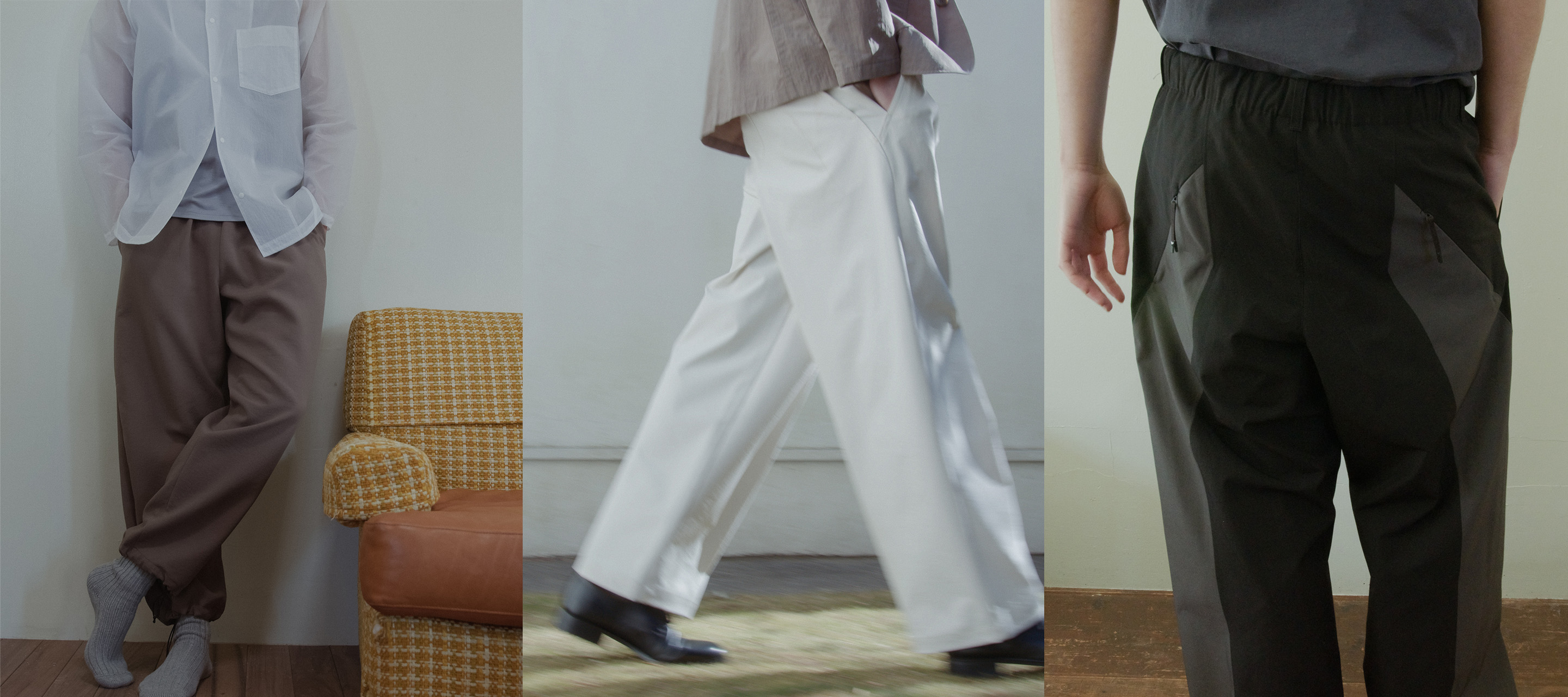 Eine alltagstaugliche Hosenkollektion. Aus der Spring/Summer 2026 Linie stammend, legen diese Stücke Wert auf ein ausgewogenes Zusammenspiel von Farbe und Material sowie auf akribische Details – vielseitige Trageeigenschaften verbunden mit schönen Silhouetten.