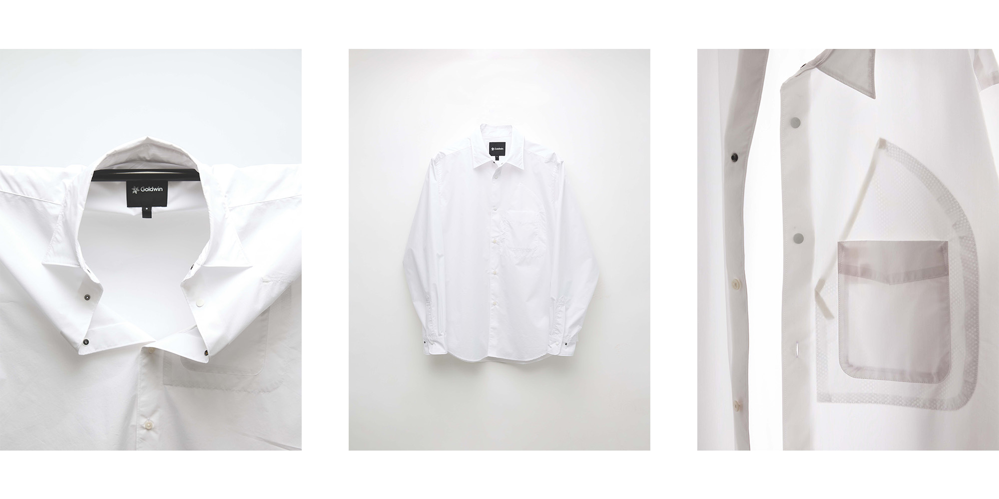 Among them was a single shirt: the Comfortable Shirt, a regular-collar style that has since become a Goldwin staple. Stress-free to wear, easy to care for, and washable at home without fuss, it embodied the brand’s approach to thoughtful design. Its details and material choices balanced practical performance with a subtle sense of play.