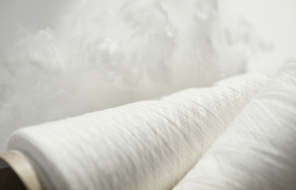 植物由来の原料を元にSpiberの発酵技術を用いて作られる次世代素材。動物繊維のような繊細な特性を備えながら、繊維製造段階(cradle-to-gate)における 1kg あたりの温室効果ガス排出量は、従来のカシミヤと比較して79%低減*されることが期待されています。またBrewed Protein™ファイバーは環境分解性を有する素材で最終製品の設計によってはマイクロプラスチック排出の課題に貢献できると注目されています。