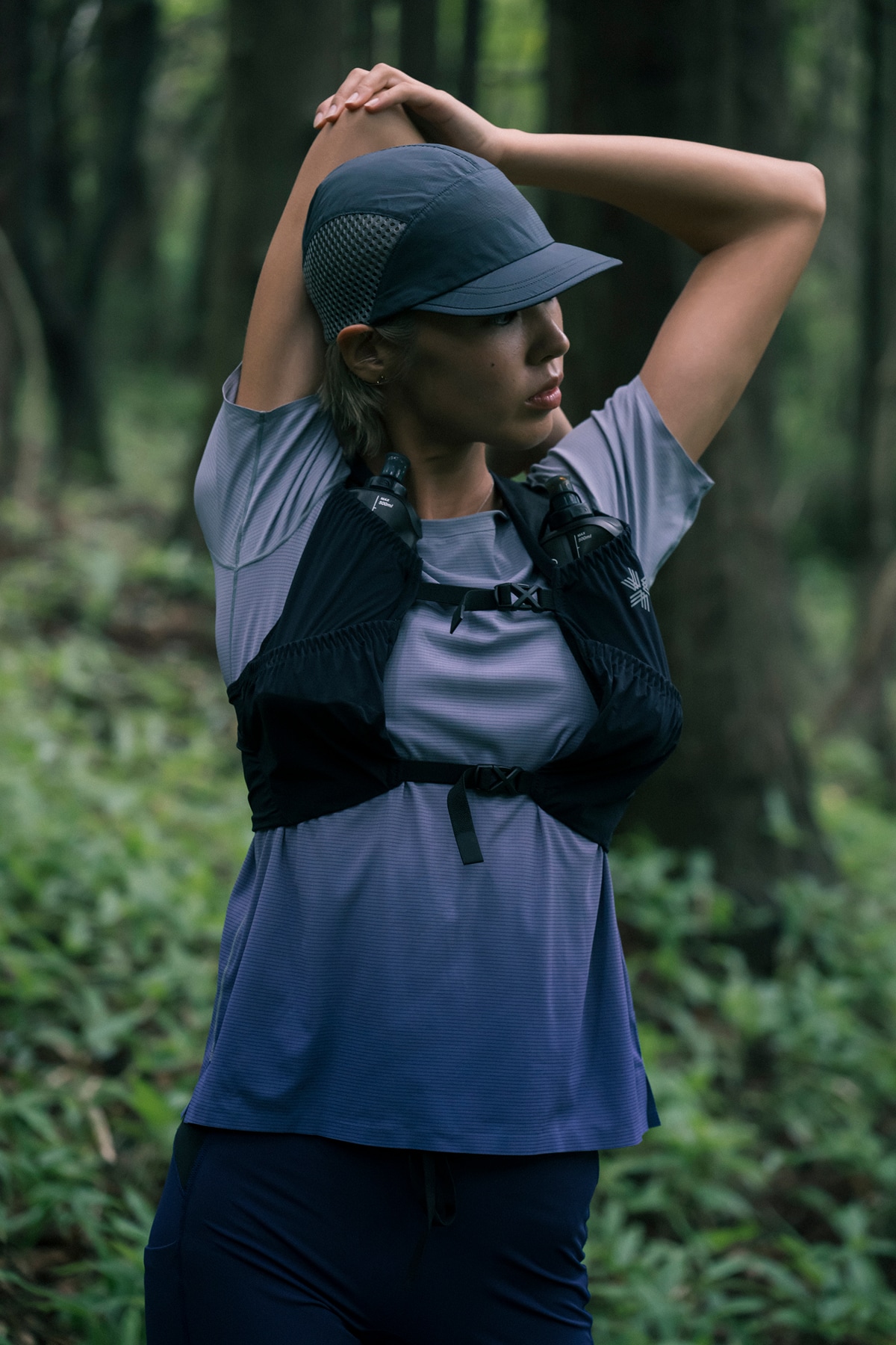 〈170BPM〉は通常130~140程度のBPMで100マイルのトレイルを走り切るトップアスリートたちが、例えばラストスパートなど最も運動強度が高まるシーンで示すような数値。つまり指標はあくまで目安で、それほどのダイナミックな動きに対しても持続的に快適性をもたらすことを目的としているのがこのラインの特徴。Pertex Shield Pro Fast Run Jacketをはじめ軽量性、防水性を兼ね備えたマテリアルをふんだんに使用しつつ、さらなる軽量性を実現するためにポケットを排すなどデザインも極限までソリッド化。さらに脚上げ角度が大きくなっても生地が突っ張らないようショーツには深いスリットを施すなど、運動機能性を高めるための工夫も随所に施しています。