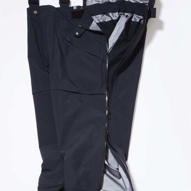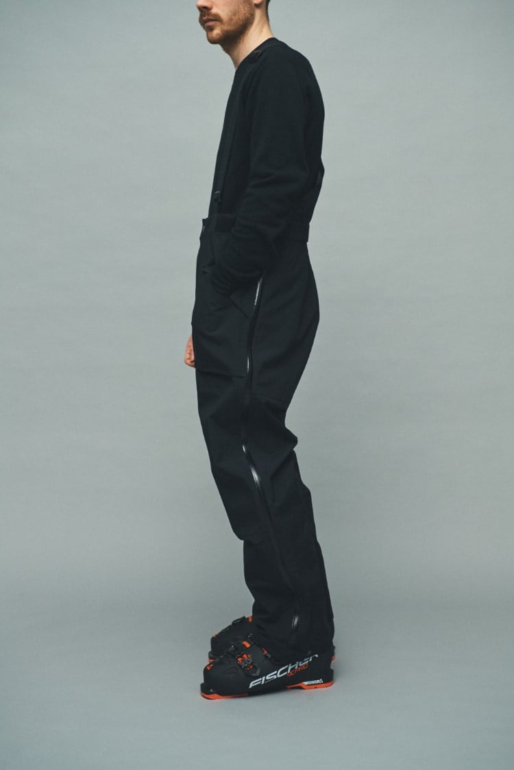 GORE-TEXの中でも特に耐久性に優れたGORE-TEX PRO SHELLを使用したスキービブパンツ。フルオープンのサイドジッパーによりブーツを履いたままの着脱が可能。左右についたマチ付きの大きめのポケットにより収納力も備えます。アイゼンガード付き。ジャケット同様リラックスシルエット。GL09520PKとのセットアップがおすすめです。
