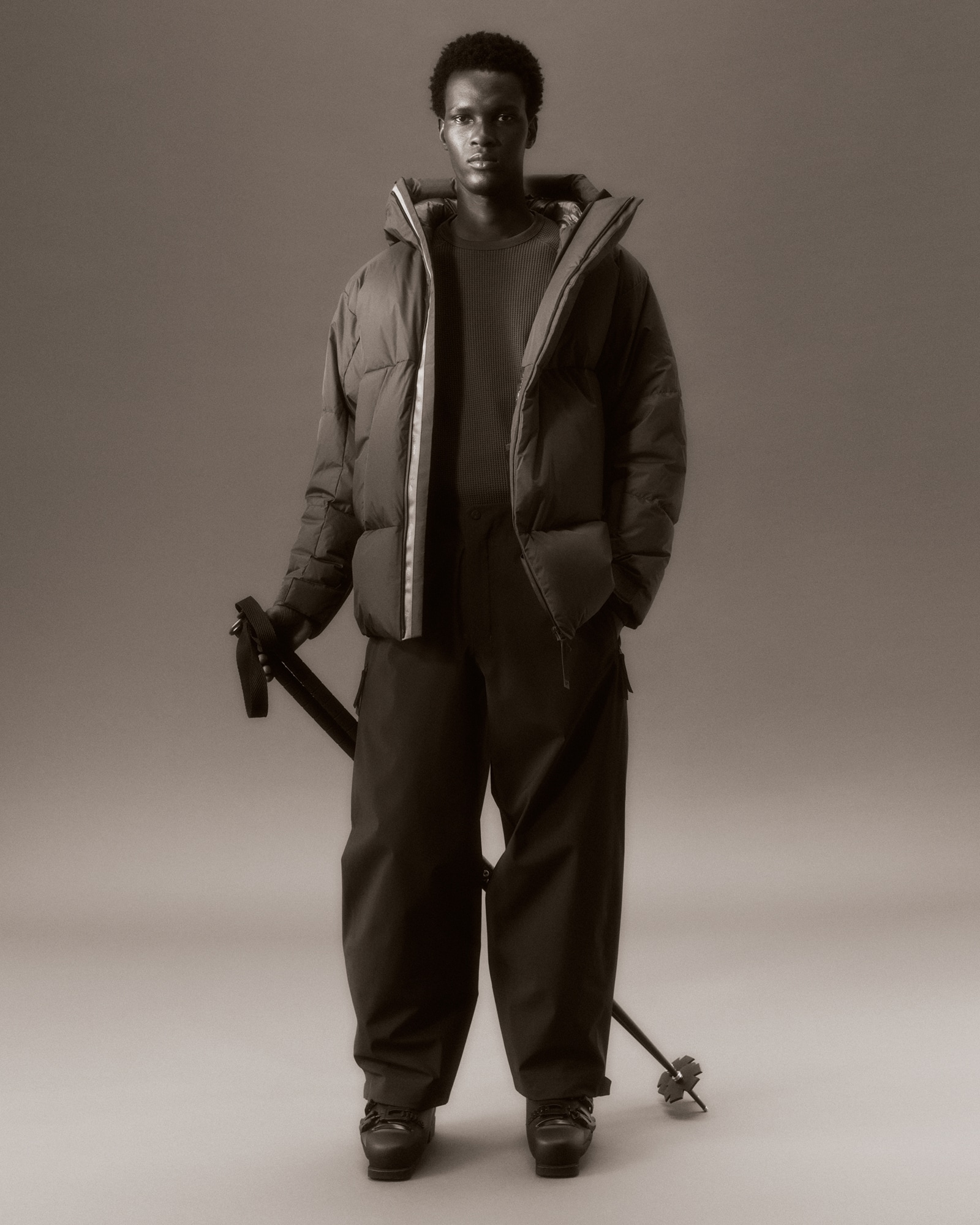 기존 스키웨어가 3,000m~4,000m급 산악 지형에서의 활강이나 스키장 퍼포먼스를 중점에 두었다면, OYABE 시리즈는 여유로운 오버사이즈 실루엣이 특징입니다. 전체적으로 부드럽고 볼륨 있는 라인으로 구성되며, 팬츠는 폭이 넓고 기장이 짧아, 마치 부츠 안에 넣어 입은 듯한 실루엣을 연출합니다. 스키 활동뿐 아니라 슬로프 전후의 시간, 스노 리조트에서 보내는 모든 순간에 편안함과 세련된 분위기를 제공하도록 설계되었습니다. 골드윈이 일본에 생산 기반을 둔 일본 브랜드라는 점을 최대한 살려, 기획부터 개발, 일부 생산까지의 프로세스를 오야베에서 일원화한 것도 중요한 요소입니다. 확실한 기술력, 고품질 소재, 정교한 디테일, 그리고 그 속에 깃든 보편적 우아함. MADE IN JAPAN의 장인 정신을 응축한 럭셔리 스키웨어 컬렉션이 바로 OYABE 시리즈의 본질입니다.