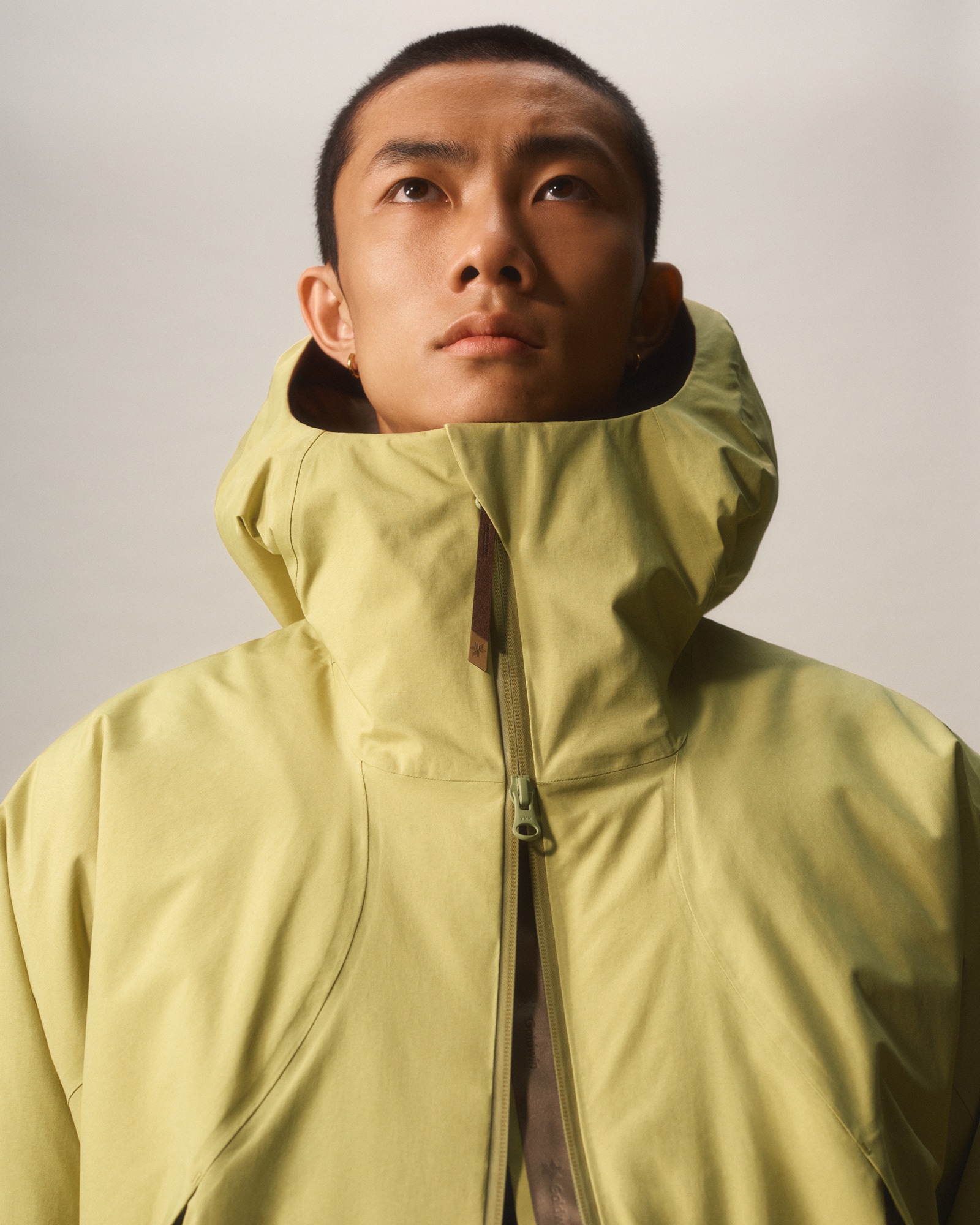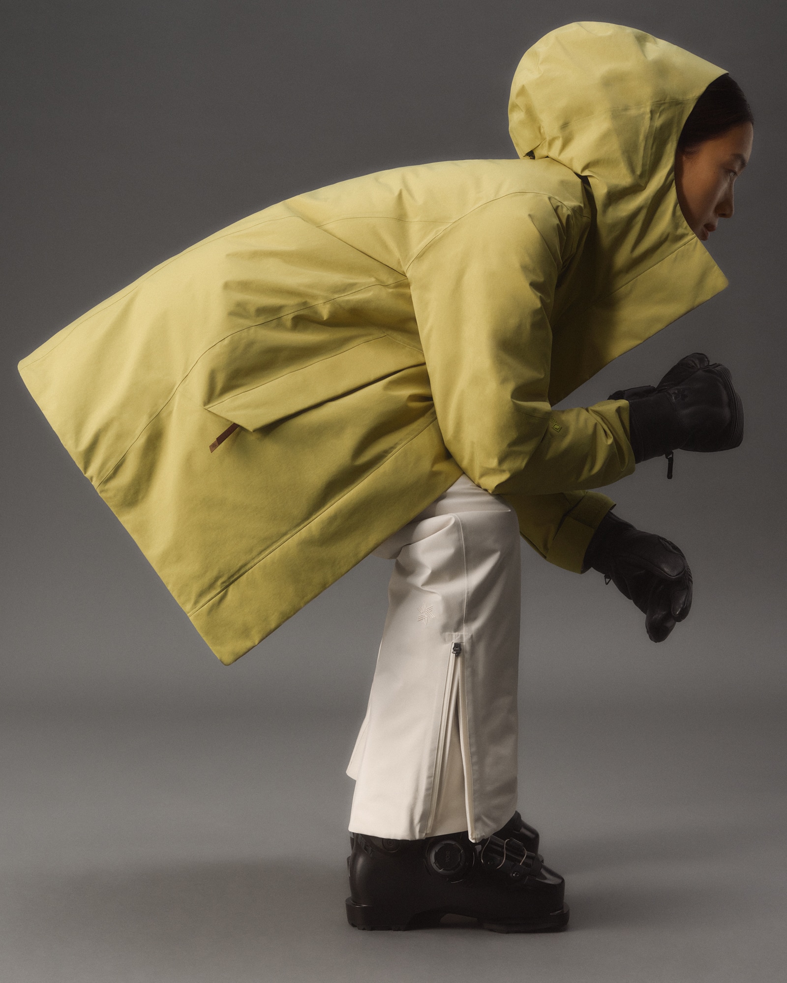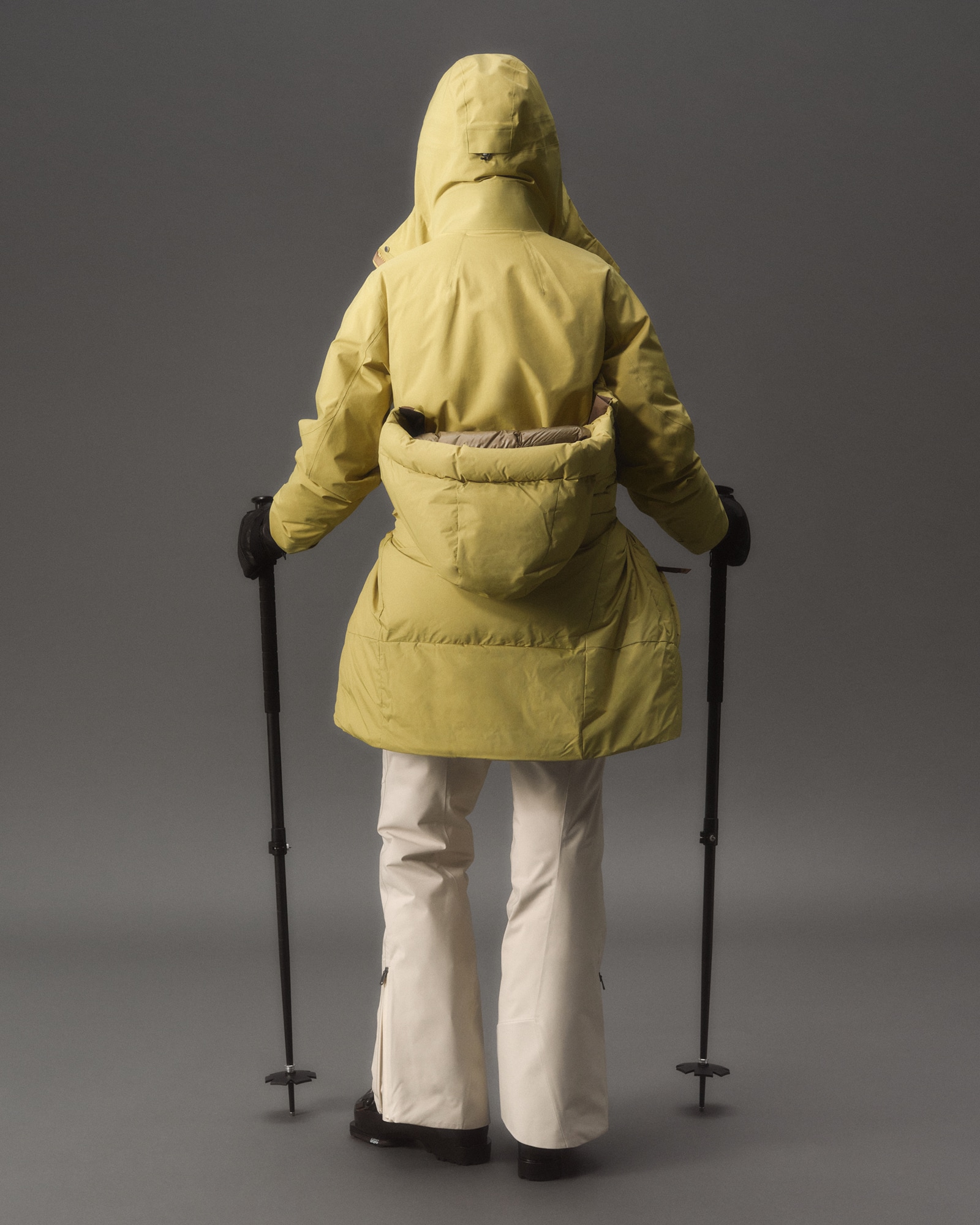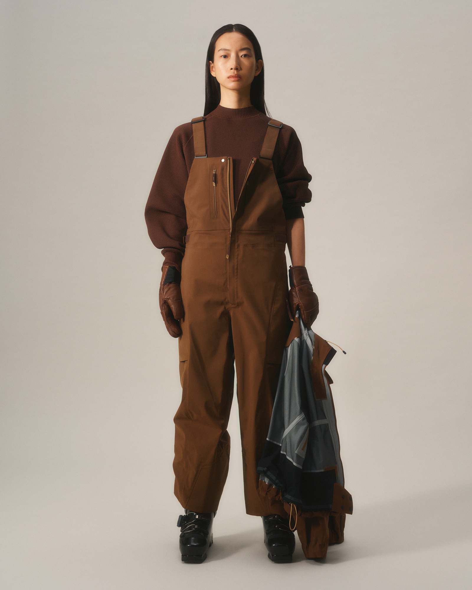 OYABE 시리즈는 다음과 같은 제품군으로 구성됩니다. 울을 사용해 자연스러운 광택을 가진 3레이어 스키 재킷과 스키 팬츠, GORE-TEX 원단에 PrimaLoft Gold Insulation with Cross Core 충전재를 사용한 2레이어 재킷, WIND STOPPER by GORE-TEX LABS에 900필파워 다운을 충전한 다운 재킷 등이 포함됩니다. 스노우 환경에서의 조작성과 편의성을 포기하지 않으면서도, 골드윈만의 봉제·가공 기술로 외관에서는 보이지 않는 디테일까지 정교하게 완성했습니다. 기존 생산 방식으로는 양산하기 어려운 섬세한 사양을 적용해 입었을 때도 벗었을 때도 아름다운 실루엣을 추구했습니다.