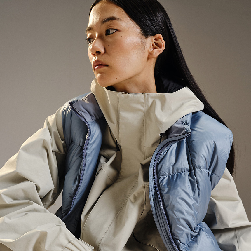 더불어, 골드윈은 이번 컬렉션에서도 브랜드의 철학인 ‘Technology =Science’에 초점을 맞춘다. 도야마현 오야베시에 위치한 Goldwin Tech Lab에서 이루어지는 제품 테스트 과정을 바탕으로, 기술을 떠받치는 장인의 손길과 제조 현장의 기록, 그리고 원초적인 자연의 풍경을 융합하여 과학과 아트, 자연이 공존하는 세계관을 디자인과 캠페인에 담아냈다.