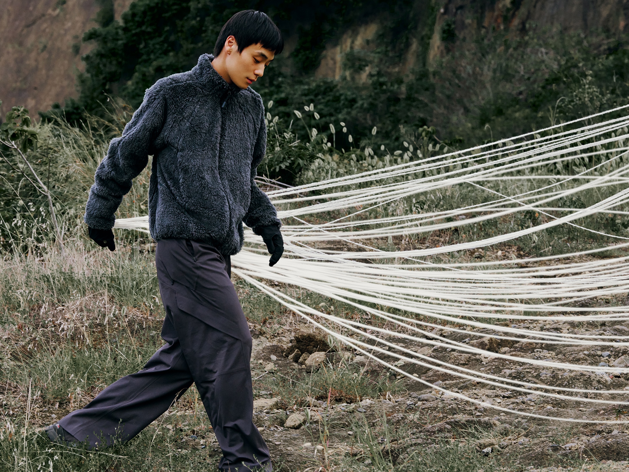 Continuing their exploration of form and functionality, Goldwin and _J.L-A.L_ unveil their second collaboration collection. Led by London-based designer Jean-Luc Ambridge, _J.L-A.L_ has become known for its sculptural approach to design—where intricate cutting techniques and unconventional uses of material and technology give rise to garments that challenge familiar boundaries. For this season, the partnership has resulted in a down jacket unlike any other. Stitch lines and fabric transitions appear to dissolve midway across the surface, creating an abstract interplay of texture and volume. Around the hood, delicate shirring adds movement and tension, while the minimalist cuffs embody the quiet precision of technical apparel design. A fleece jacket further expands this dialogue between craftsmanship and innovation. Defined by _J.L-A.L_’s signature panel construction, it offers a glimpse into the future of clothing. The piece is crafted from a next-generation boa fleece material that combines Brewed Protein™ and silk fur with a plant-derived biomass plastic base, PlaX. Through the use of SYN-GRID technology, fabric waste during production has been reduced by approximately 50%, merging advanced sustainability with tactile luxury. Together, these pieces reflect a shared vision between Goldwin and _J.L-A.L_: to create garments that not only perform, but also provoke—where the language of the outdoors meets the imagination of contemporary design.
