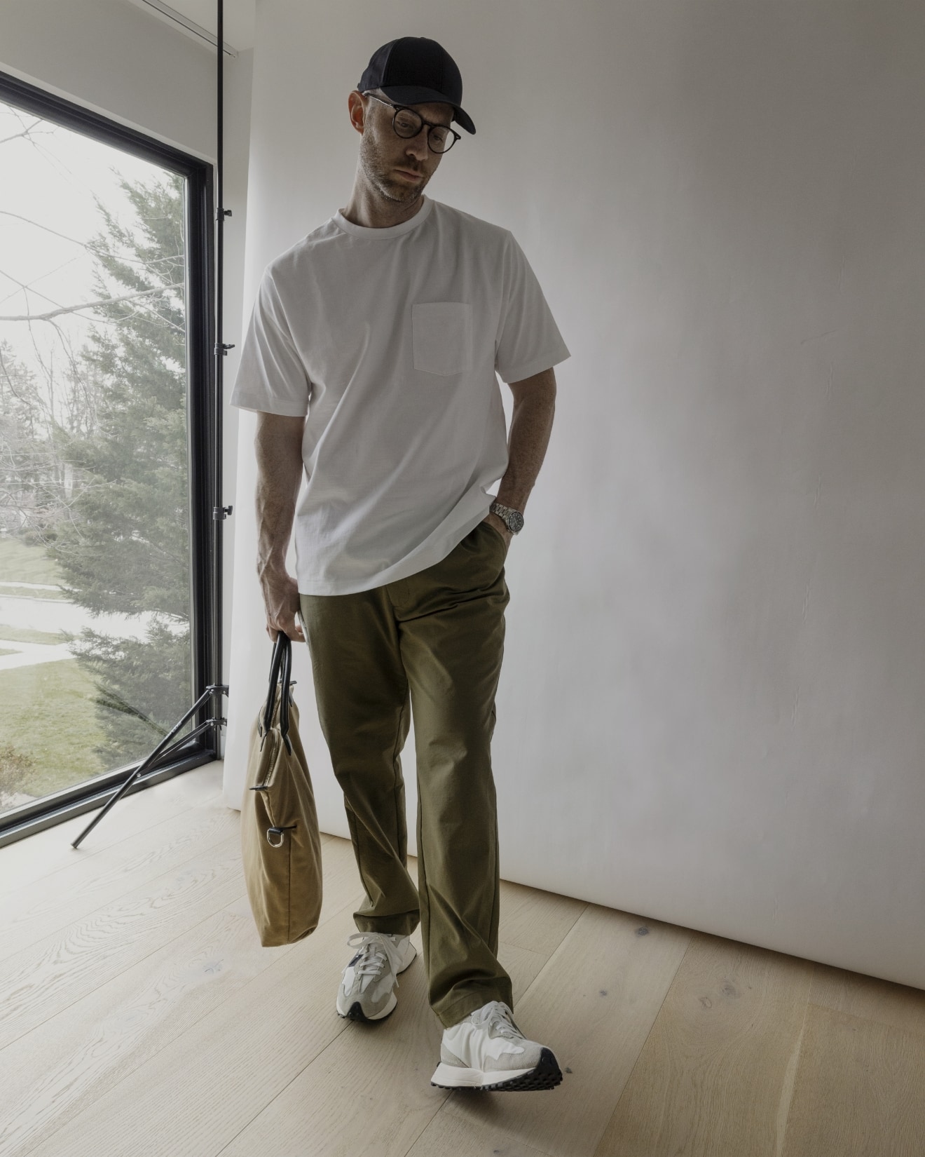 My go-to look with the One Tuck Trousers: I’ve really been enjoyed pairing them with my New Balance 995s or 327s lately. The contemporary oversized silhouette of these pants pairs really well with chunkier sneakers. I like to round off the look with a simple oversized t-shirt or hoodie depending on the weather.